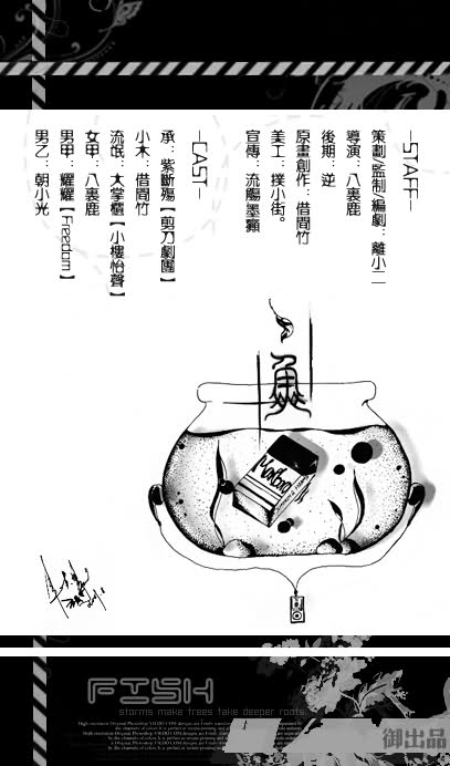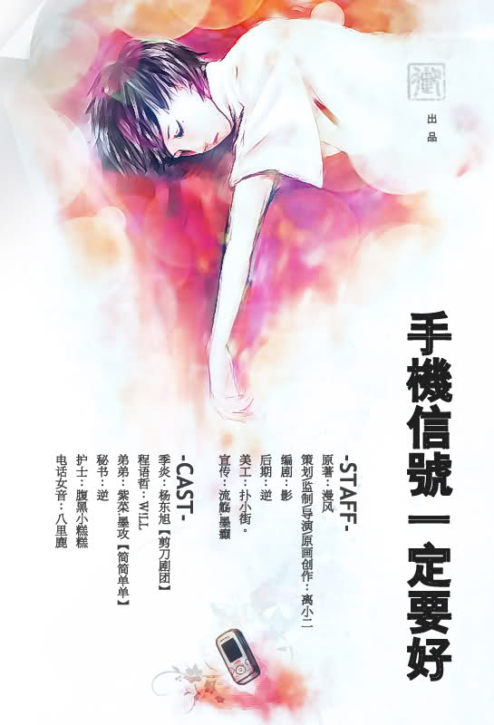 这个剧本,本是无心之物,没想到会做成剧,所以真的很开心很开心,特别是要感谢后期小逆,把这个这么意识流的东西诠释得这么有FEEL,然后要谢谢紫叔,耀耀,小光,小鹿的参与配音,还有偶可爱的小竹弟弟……不只配了小木这个角色还帮偶画了海报。小鹿的初次导演很不错!!赞…当然不能忘记小扑和流觞,海报GOOD宣传GOOD。于素…大家都辛苦了,谢谢大家………